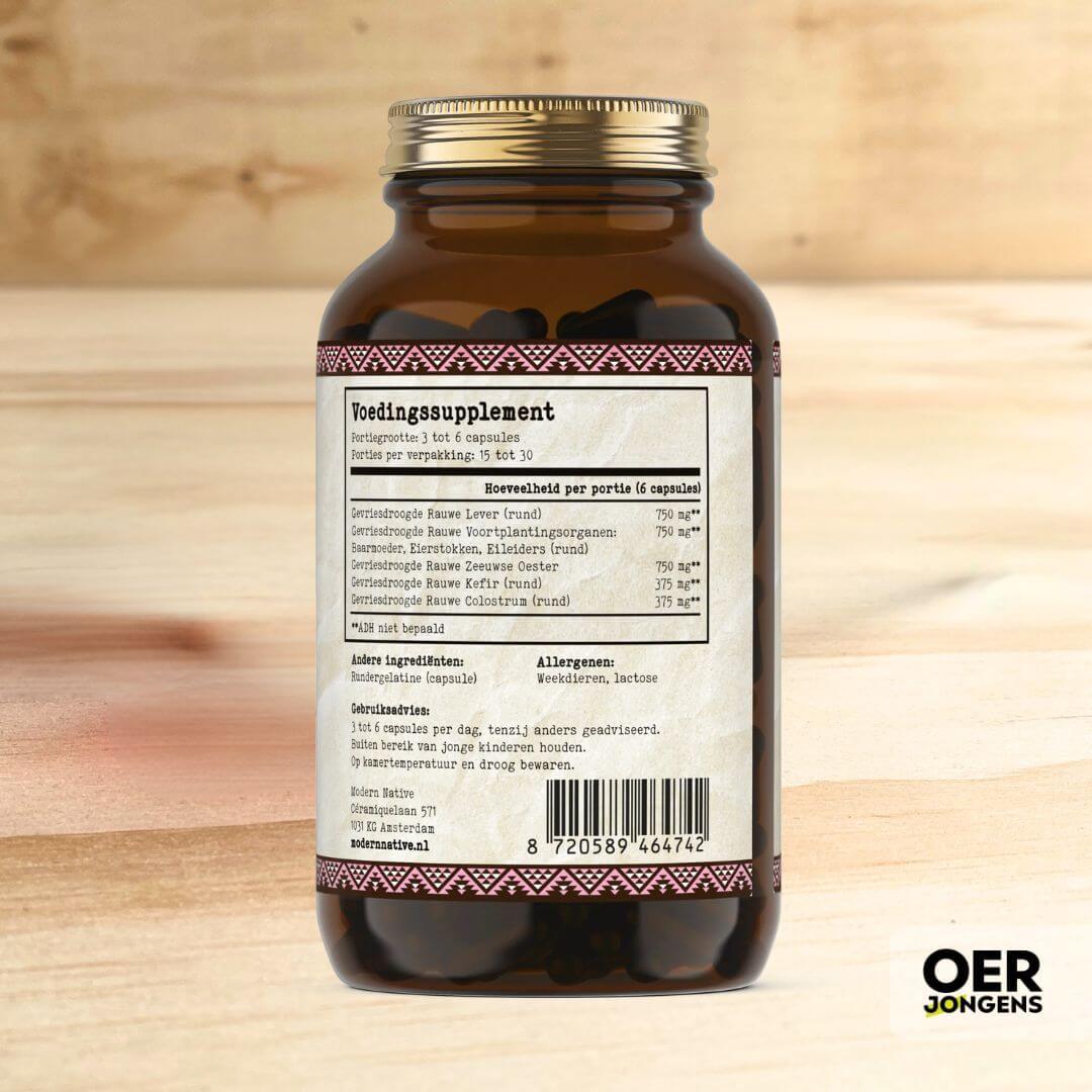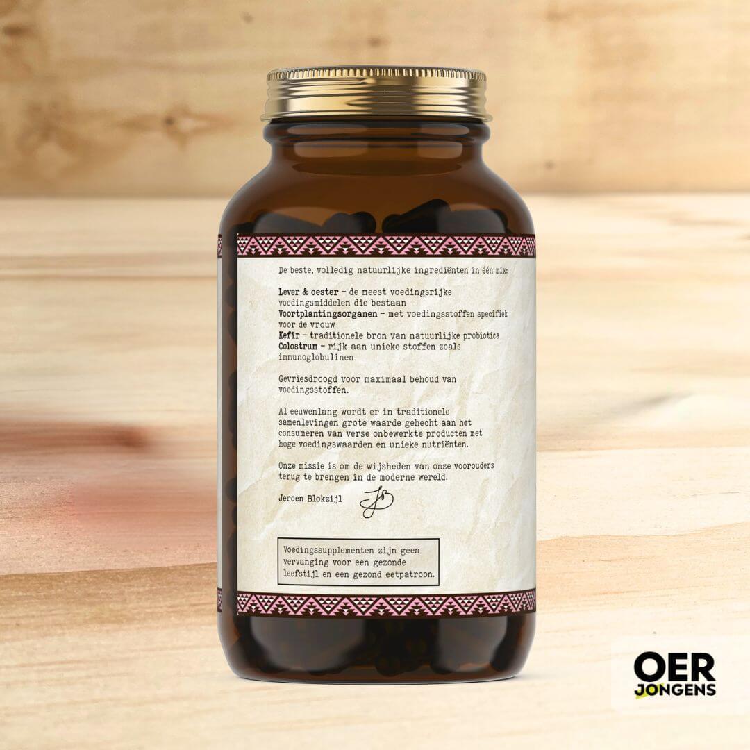 De natuurlijke ondersteuning voor elke vrouw. Deze unieke vrouwenformule combineert runderlever, oester, kefir, colostrum en vrouwelijke rundergeslachtsorganen voor optimale voeding van binnenuit. Een krachtige mix van dierlijke voedingsstoffen die helpt om jouw energie, huid, vruchtbaarheid en hormonale balans te ondersteunen.